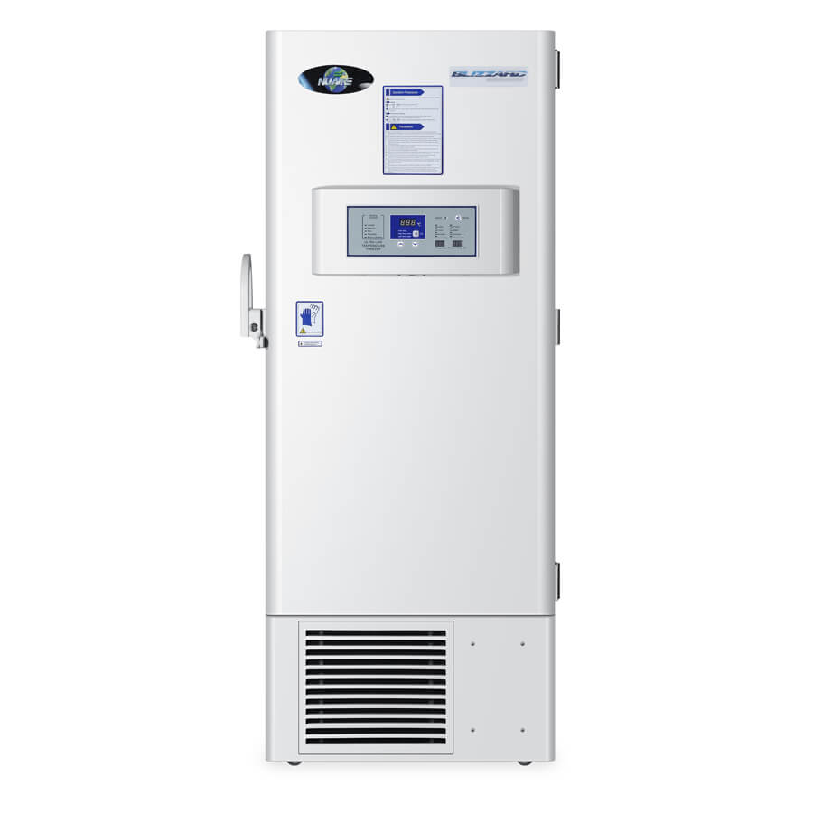 Introducing the Blizzard NU-99338J, an 12 cu. Ft. (341 L) -86°C Ultralow Freezer is expertly designed for laboratories requiring cost-effective, ultra-low temperature storage in a compact form. This freezer utilizes HC refrigerants, ensuring energy-efficient operation. Its robust structure, combining steel walls with composite VIP and polyurethane insulation, guarantees optimal thermal protection. The internal layout features multiple insulated doors and stainless-steel shelves, facilitating easy access while maintaining temperature stability. The front electronic control panel constantly displays running parameters, with a USB port enabling extensive data logging. The NU-99338J is the perfect solution for labs needing reliable, ultra-low-temperature storage in a space-conscious, energy-efficient model.