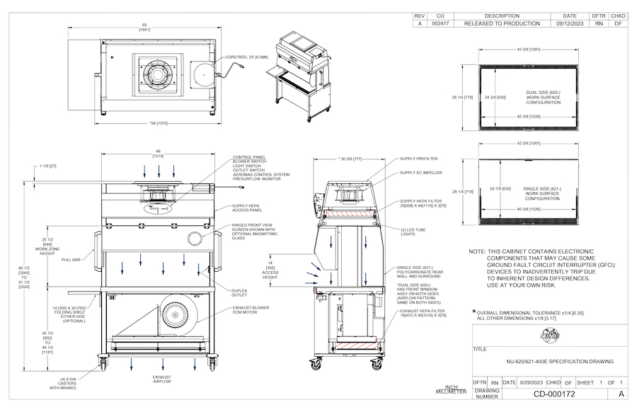Discover the comprehensive technical product drawing for our nominal 4-foot 230-volt Animal Transfer Station (ATS) models NU-620-400E and NU-621-400E, designed to provide detailed visual insight into these cutting-edge Animal Transfer Stations. This drawing showcases the standard features that make these models exceptional and offers precise product dimensions, ensuring you have all the information you need for your vivarium setup. Download this invaluable resource to explore every facet of our Animal Transfer Stations and make informed decisions for your research environment.