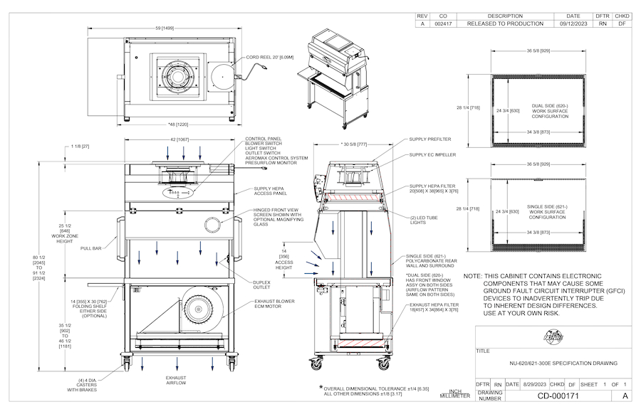 Explore this comprehensive technical product drawing for AllerGard Animal Transfer Station (ATS) models NU-620-300E and NU-621-300E. This detailed illustration displays the standard features that make these transfer stations a reliable choice and provides the critical product dimensions essential for installation and integration into your vivarium setup. Whether you’re an animal technician or facility manager, having access to this drawing ensures that you can plan and implement these transfer stations effectively, optimizing your laboratory workflow and animal handling processes. Download the drawing now to gain insights into these innovative solutions from NuAire.