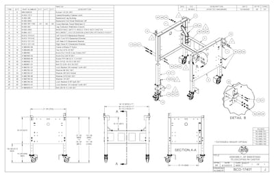 NU-800 Casters Telescoping Base Stand Cut Sheet