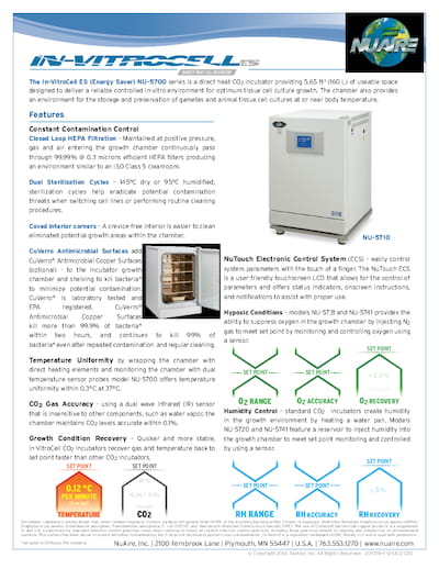 In-VitroCell NU-5700 CO2 Incubator Product Flyer