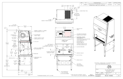 NU-543-300E 230-Volt Biosafety Cabinet Spec Drawing