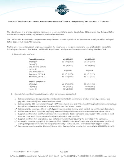 Class II, Type B1 Biosafety Cabinet NU-427 (115V) Specification