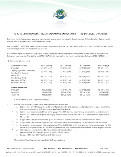 View the Full Guide for Class II, Type A2 Biosafety Cabinet NU-540E (230V)