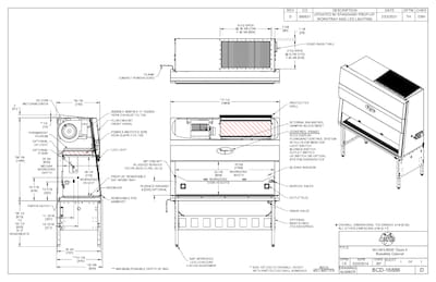 NU-543-600E 230-Volt Biosafety Cabinet Spec Drawing
