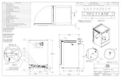 Product specification drawing for 7 cubic feet (200 Liter) direct heat CO2 incubator model family NU-5800.