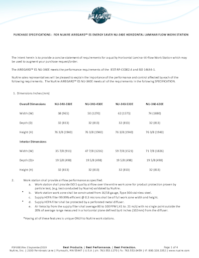 View the Full Guide for Laminar Airflow Workstation Horizontal NU-340E (230V)