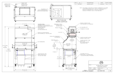 NU-608-400 Animal Refuse Workstation Specification Drawing with Motorized Base Stand