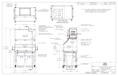 NU-608-400 Animal Refuse Workstation Specification Drawing with Telescoping Base