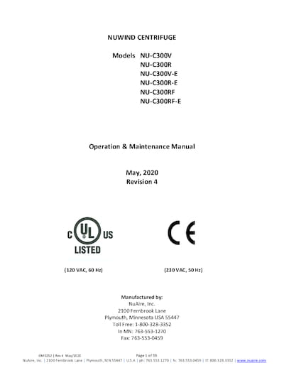 NuWind NU-C300/NU-C300-E Centrifuge Manual