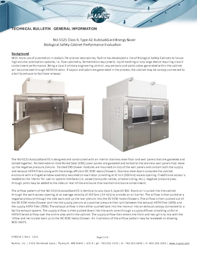 NU-L125 Class II, A2 AutoLabGard Biosafety Cabinet Performance Evaluation